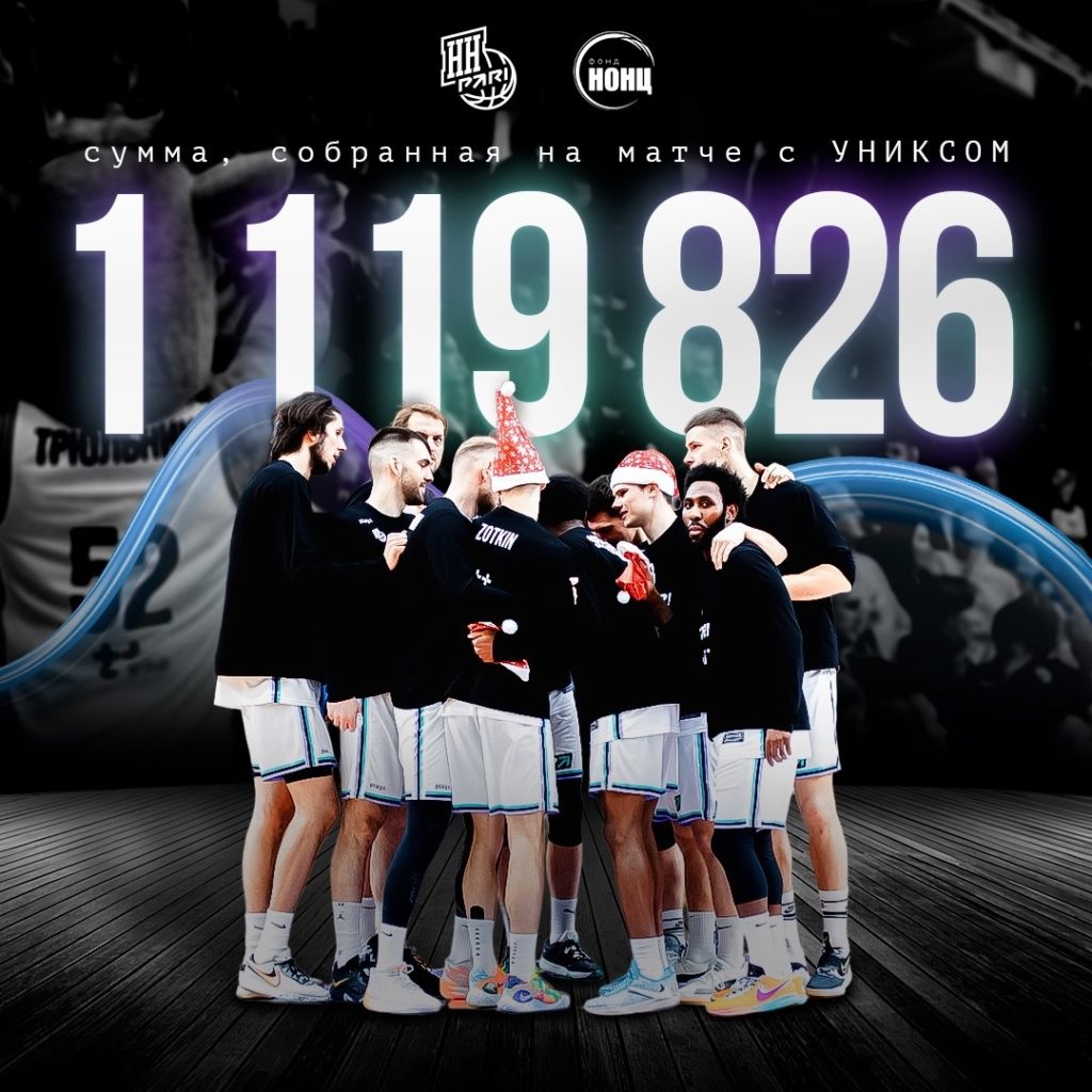 На новогоднем матче «Пари НН» против УНИКСа мы собирали средства для Фонда «НОНЦ» , который занимается оказанием различных видов помощи детям из Нижегородской области, страдающим онкологическими и онкогематологическими заболеваниями.